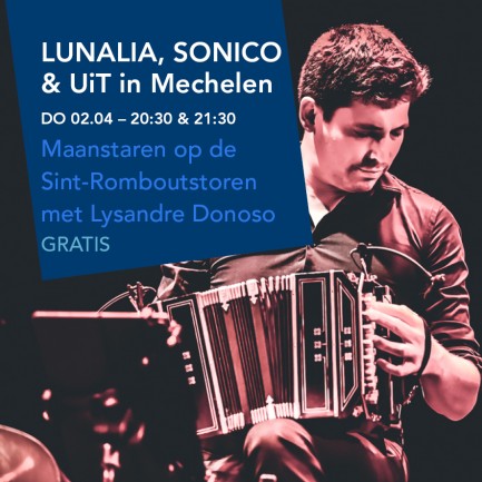 In the home town of the Maneblussers and the Lunalia festival, every full moon is an extra special moment. Together with Lysandre Donoso, bandoneon player with SONICO and an absolute reference in the world of tango, you can gaze at the moon from the top of St Rumbold's Tower. In the ash cellar (the highest floor of the tower), he will give an intimate concert featuring Argentine traditional songs and the music of Astor Piazzolla and Eduardo Rovira.
